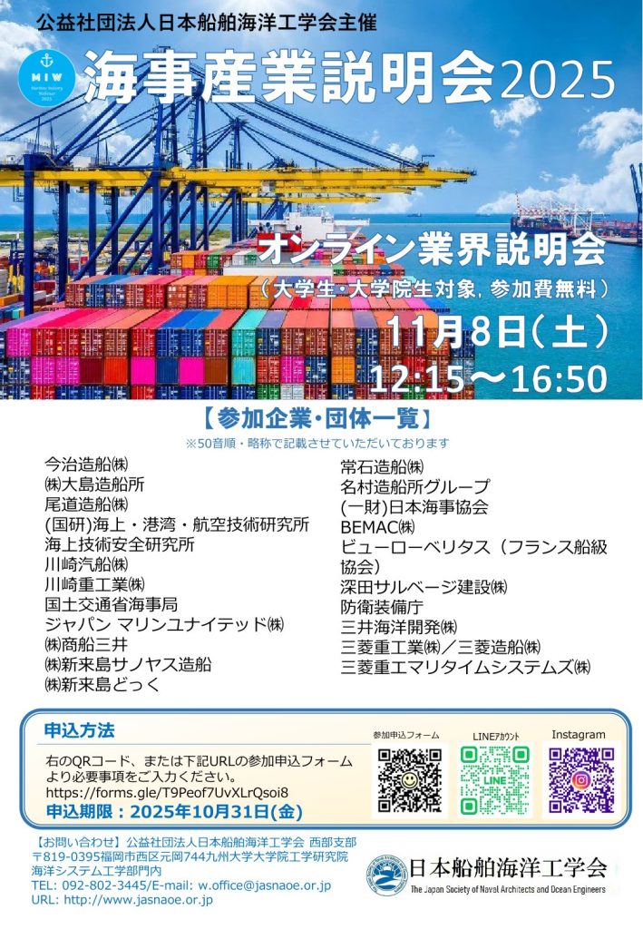 日本船舶海洋工学会より、海事産業説明会のご案内です。