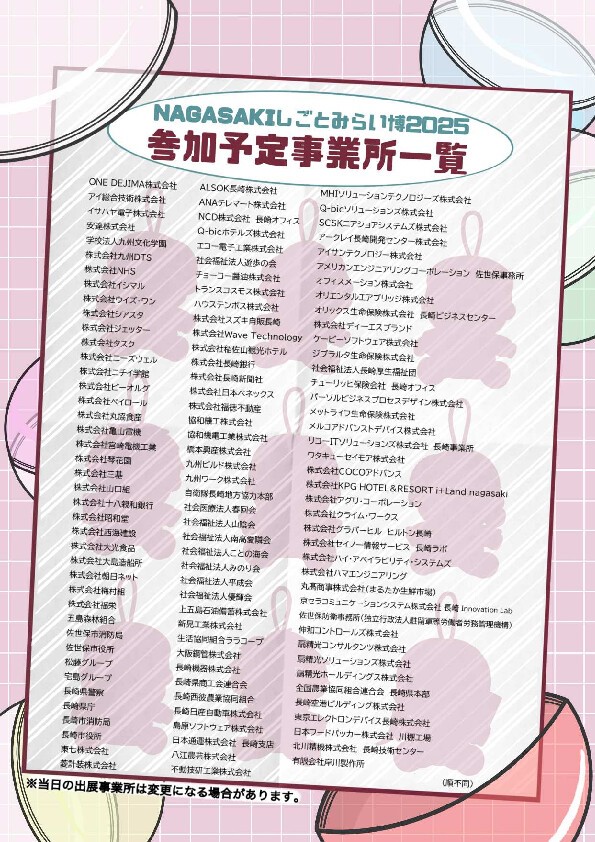 最新情報は、「NAGASAKIしごとみらい博2025」Instagram(@nagasaki.sigoto.miraihaku2025)で確認ください!