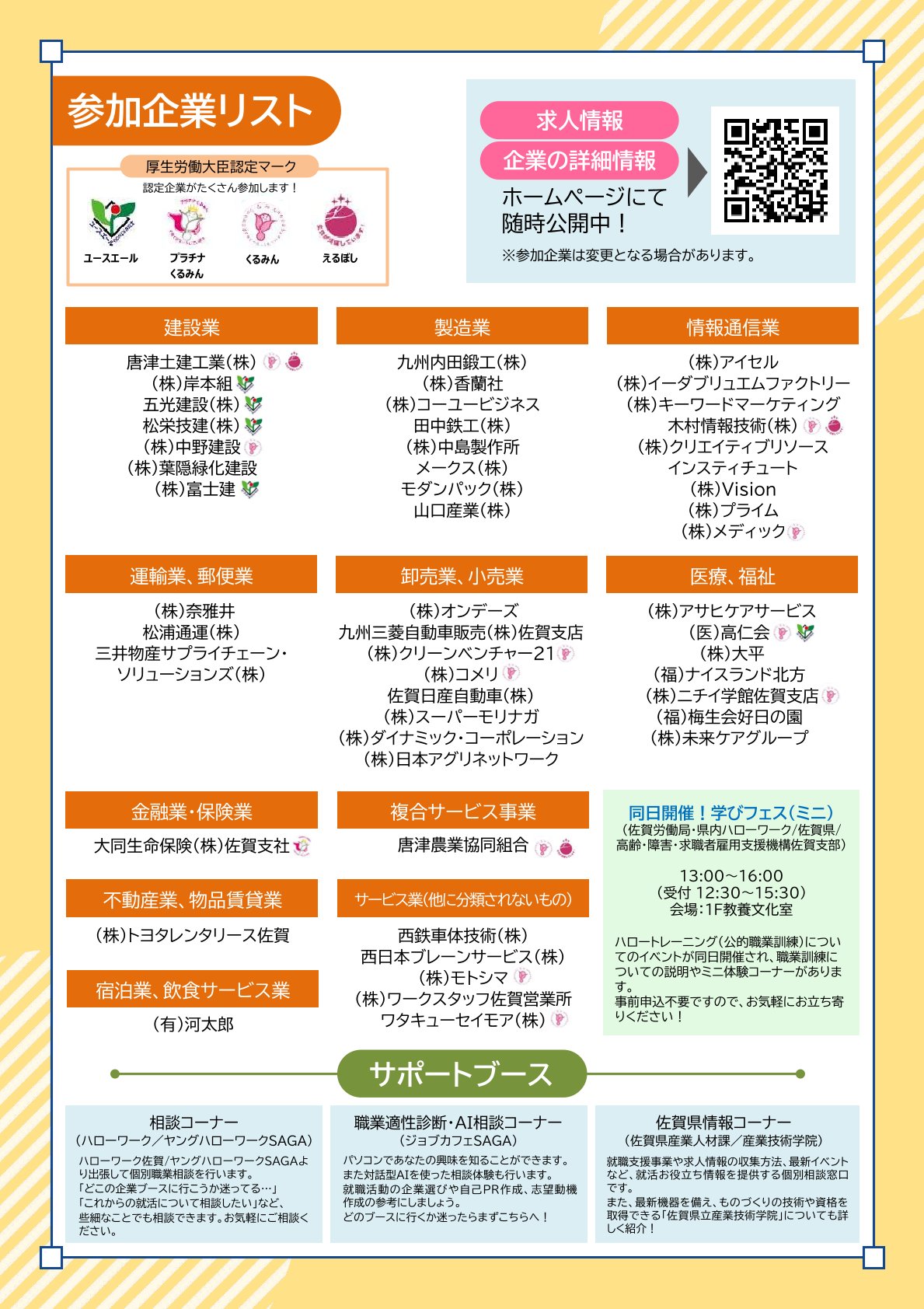 佐賀労働局委託若年者地域連携事業より、佐賀県内への就職を希望する求職者を対象とした、