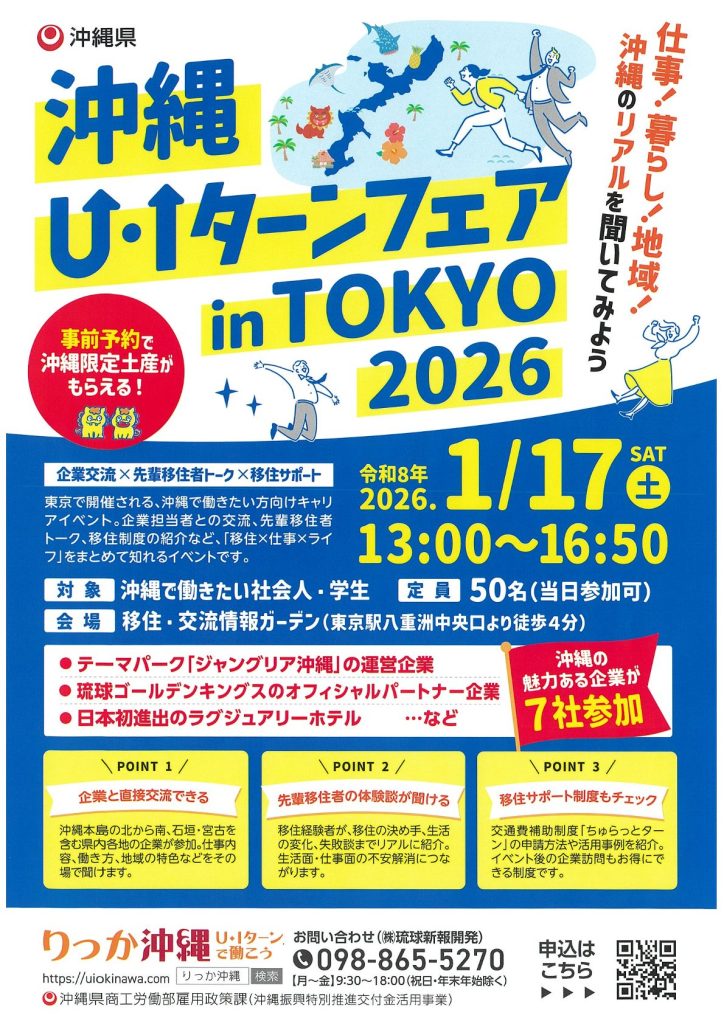沖縄県より、U・IターンフェアinTOKYO2026のご案内です。
