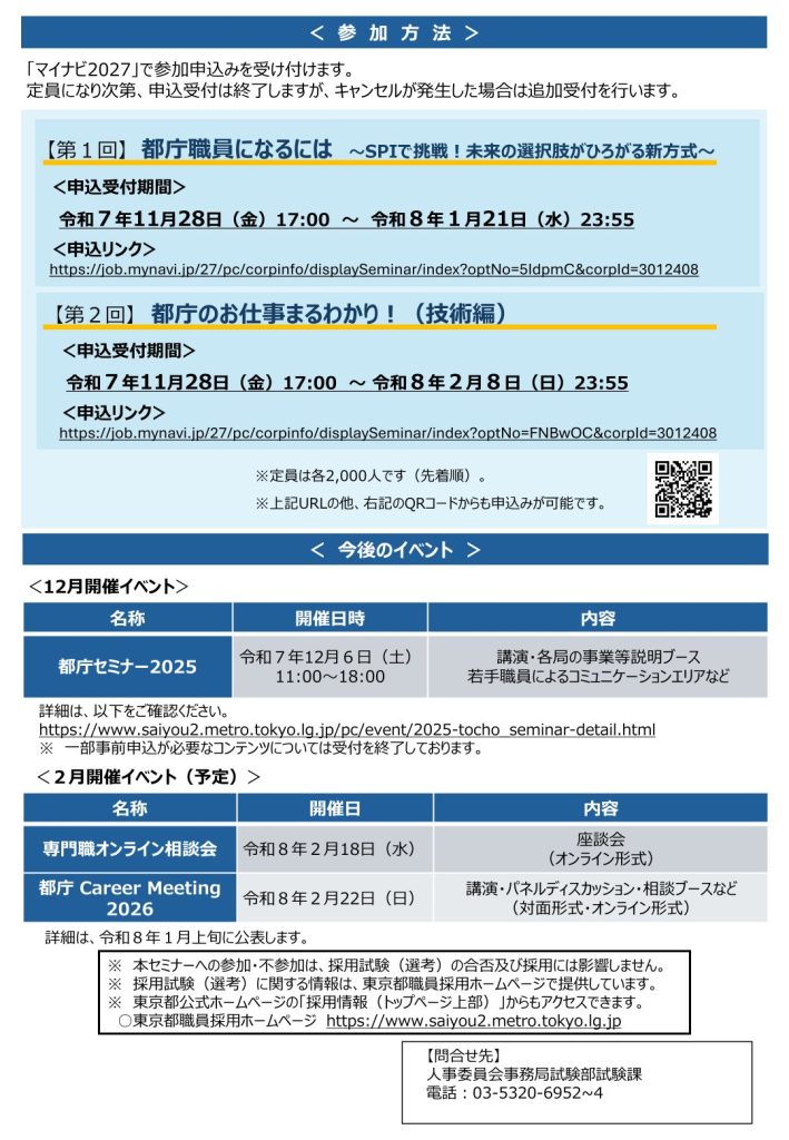 公務員志望の方はもちろん、都庁の仕事や採用試験に関心のある学生の皆様は、ぜひご参加ください。
