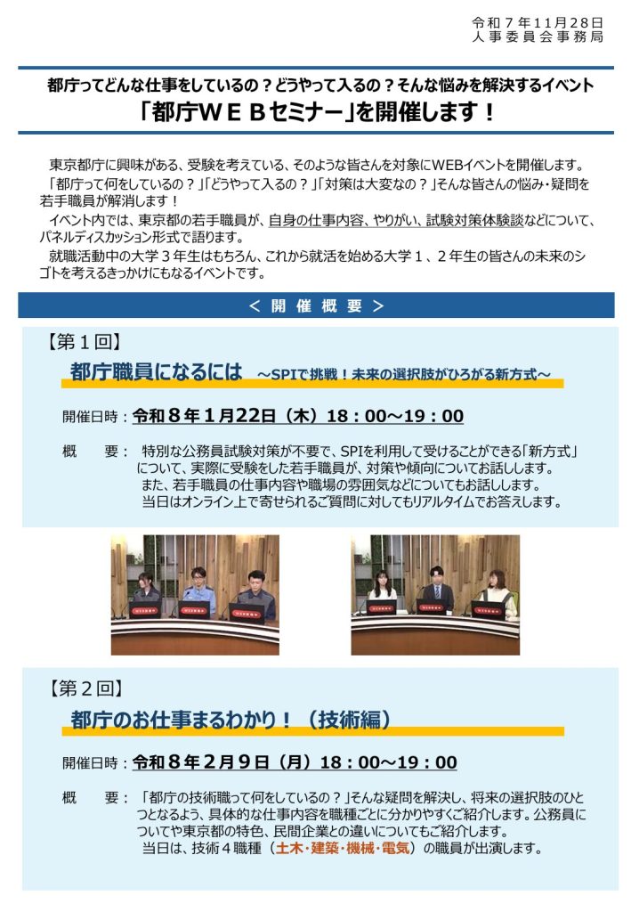 この度、学生の皆様を対象としたWEBイベント「都庁WEBセミナー」を開催いたします。