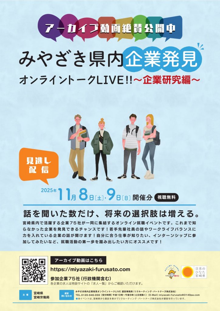 宮崎県・宮崎労働局主催のオンライン就職イベント<アーカイブ>のご案内です。