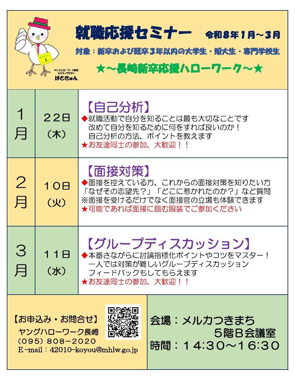 ヤングハローワーク長崎(長崎新卒応援ハローワーク)では、全学年を対象にした就職応援セミナーを開催しています。