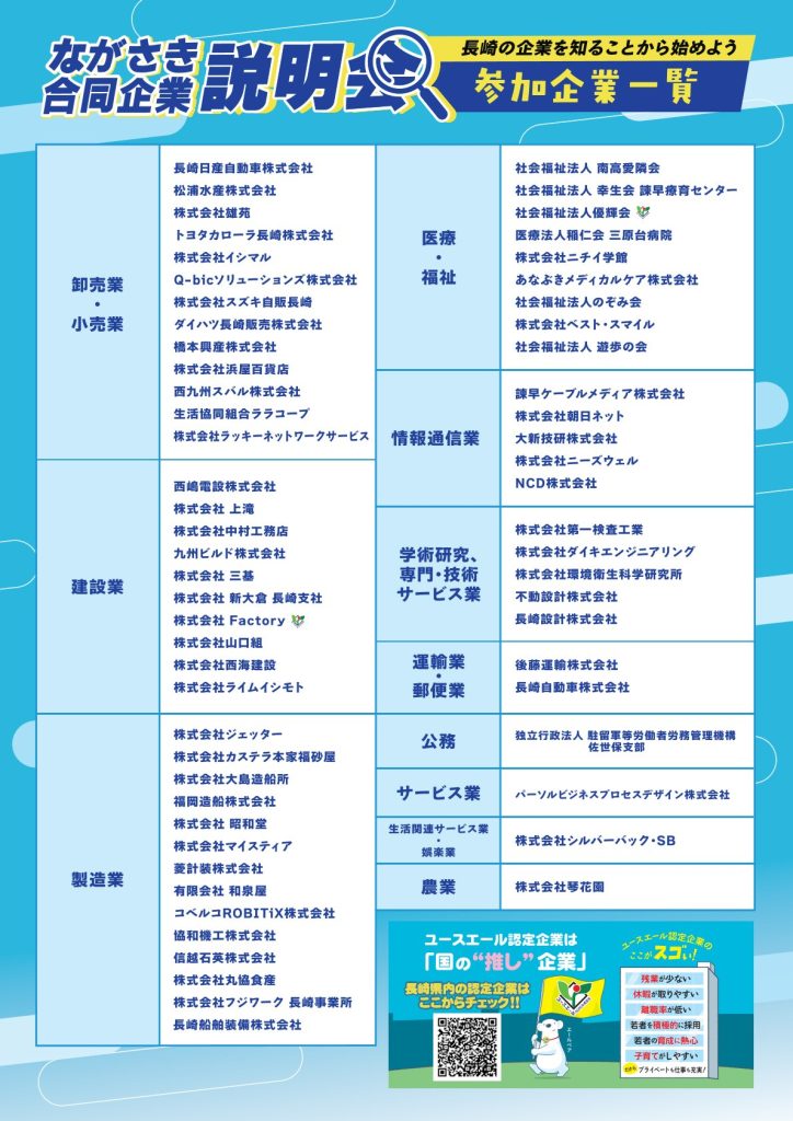 長崎労働局主催の「ながさき合同企業説明会」のご案内です。