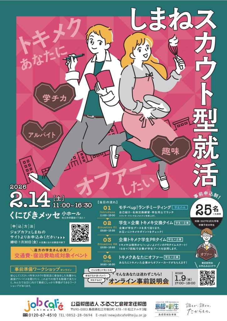 島根での就活におすすめ!2027年卒の学生を対象とした逆求人型イベント「しまねスカウト型就活」を開催します!