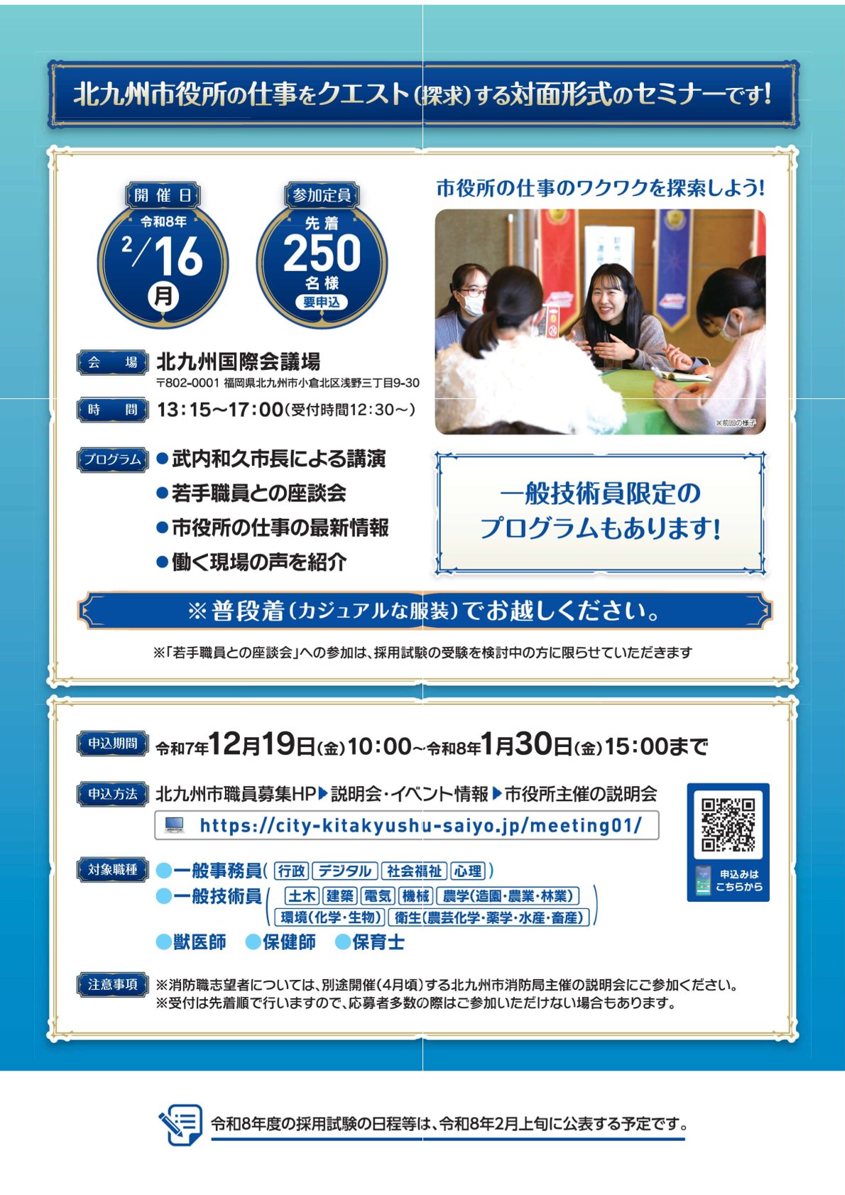 ※対象:北九州市職員の仕事内容に興味のある方(新卒・第二新卒・社会人経験者・保護者・進路指導者など)