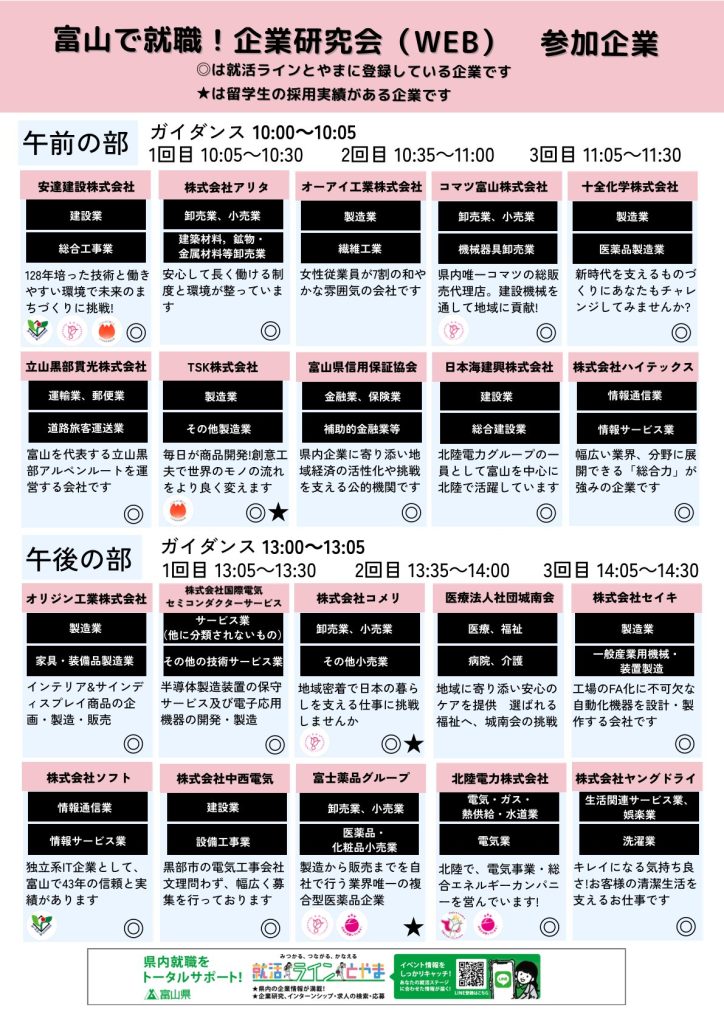 ヤングジョブ富山より、「富山県で就職!企業研究会(WEB)」のご案内です。