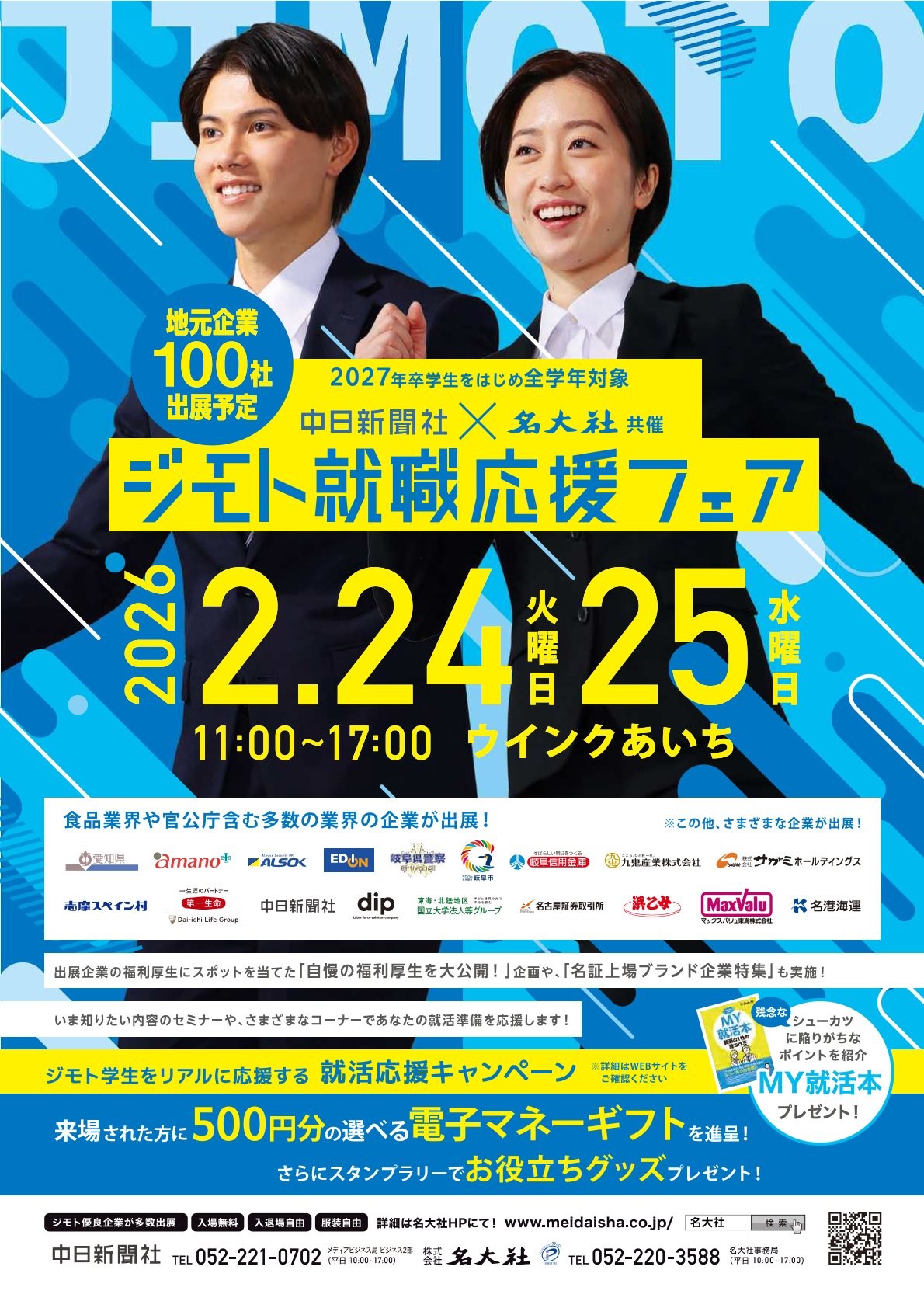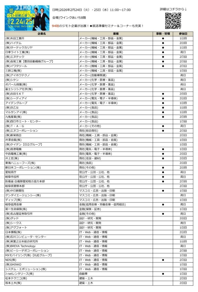 2月24日(火)・25日(水)にウインクあいちにて中日新聞×名大社 共催「ジモト就職応援フェア」を開催いたします。東海地区の優良企業、94社が出展予定です!