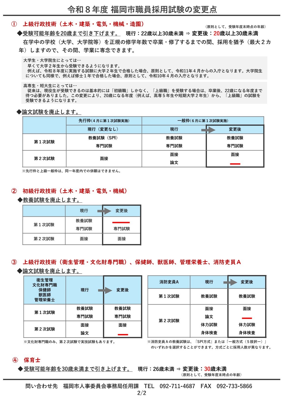 福岡市では、令和8年度に実施する市職員採用試験から、下記の変更を行います。