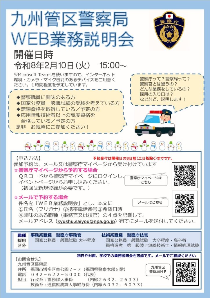 警察職員に興味のある方や、国家公務員一般職の受験を考えている方、無線資格を取得予定の方など、どうぞお気軽にご参加ください!